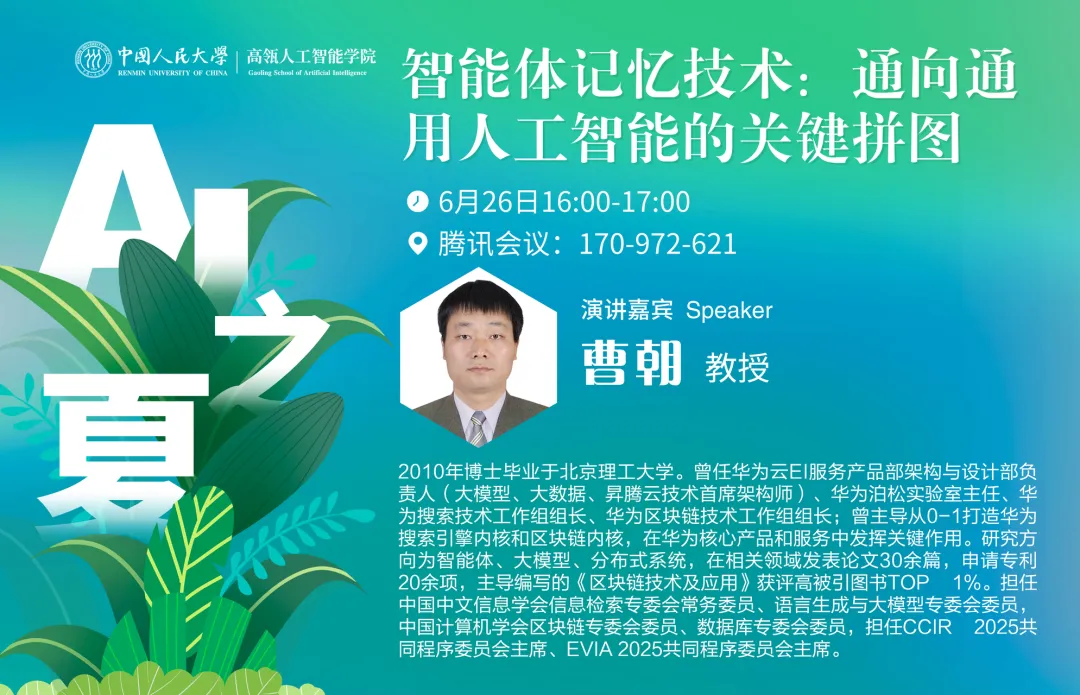 "AI之夏"研招系列学术讲座第14讲:智能体记忆技术:通向通用人工智能的关键拼图