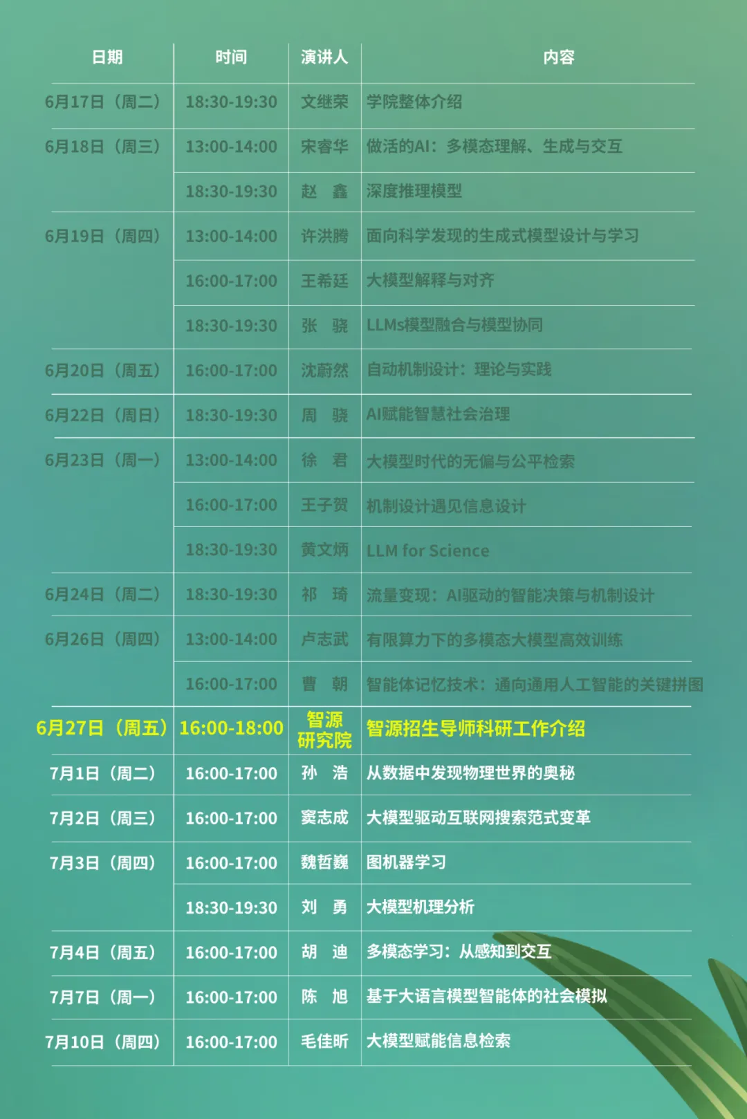 活动时间:6月27日,16:00-17:50