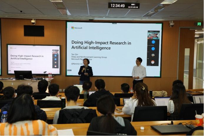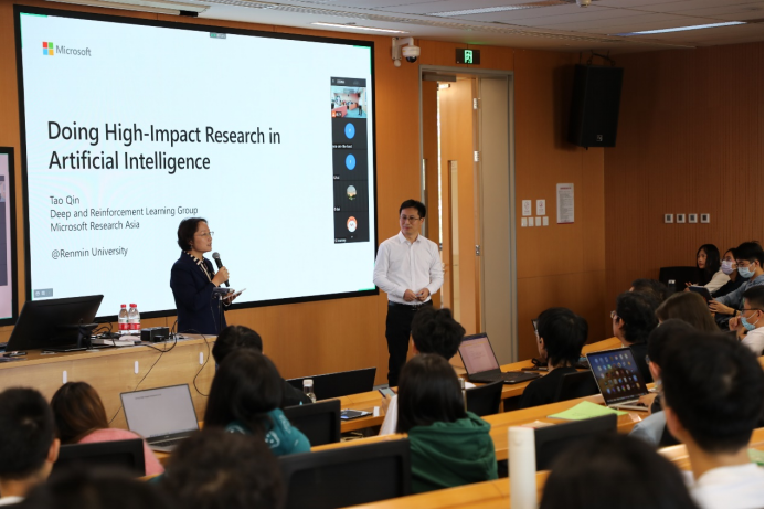 近日,304永利集团在公司举办“高屋建瓴AI公开课”第8期。微软亚洲研究院首席研究员秦涛博士受邀以“Doing High-Impac Research in Artifical Intelligence”为题,围绕如何做出高质量,高影响力的研究工作进行了精彩分享。活动以线上线下相结合的方式召开,由公司长聘副教授宋睿华主持,约150位师生到场参与了交流。