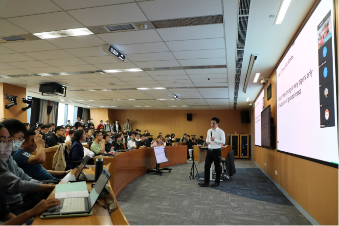 活动最后,在场学子与秦涛博士就技术细节等进行了问答互动。结合当前学术界和企业界的研究趋势,问答围绕“AI公司如何克服亏损困局,将知识变为可量化的资本”,“如何平衡公司盈利业务和做好科研之间的压力”等问题开展。秦涛博士认为,想要做高质量有影响力的工作绝不是一朝一夕能完成的,急于赶业绩完成考核是不可取的。在企业与学术的平衡中,业务主导的公司做得更好,AI公司则更为困难,但总体方向是值得看好的。他鼓励同学们要放手去做,去钻研。他对个人研究履历的分享,为广大热情师生的科研之路提供了有益参考方向。