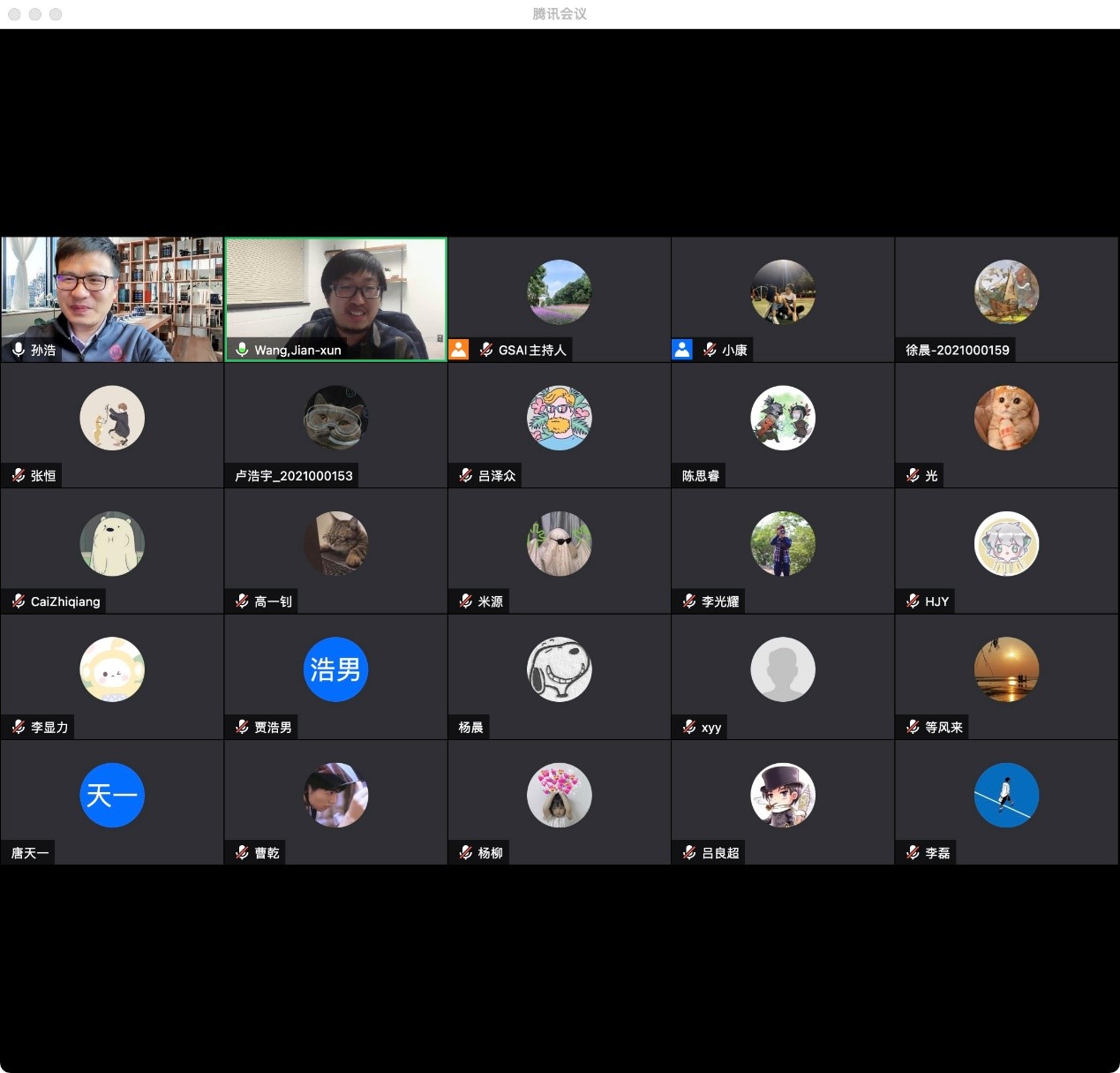 在问答环节,与会师生结合当前机器学习方法与流体物理模型结合的研究趋势,围绕“如何有效利用稀疏数据,模拟数据,无监督数据”,“Neuman边界是否可以用hard约束”等问题与主讲嘉宾进行了讨论。王建勋博士认为,传统基于偏微分方程和数值离散化的复杂流体系统的高保真建模和仿真已经发展了几十年并取得了较大成功,但在许多复杂场景中以高精度有效地求解这些偏微分方程依然很具有挑战性,而与计算潜力很大的深度模型相结合,将帮助更好地解决计算流体力学问题中的挑战。
