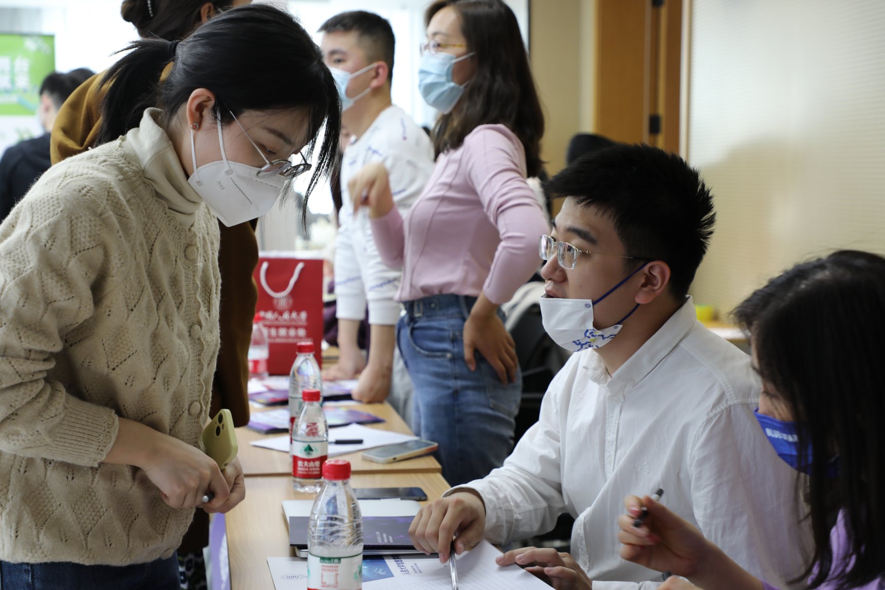 招聘会场面火爆,气氛良好,秩序井然,每位应聘者都手持自己精心准备好的自荐书和简历穿梭于人流之中,积极与招聘人员交流,主动了解用人单位的情况。