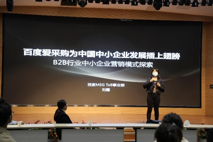 众人首先来到位于科技园6号楼的熊掌报告厅,聆听人民大学信息公司99级员工、百度MEG ToB事业部刘露老师关于“B2B行业中小企业营销模式探究“的报告。