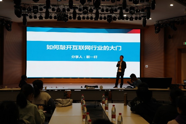 接着,入职百度的靳一轩学长为大家分享了自己入职互联网行业的个人经验,围绕寻找实习方法、面试技巧、实习收获等多个方面向同学们描述职业规划的清晰路径。他表示要明确实习的目的,最大化利用实习实现自我成长,珍惜低成本试错的机会,在实践中提升自身能力,丰富个人阅历。