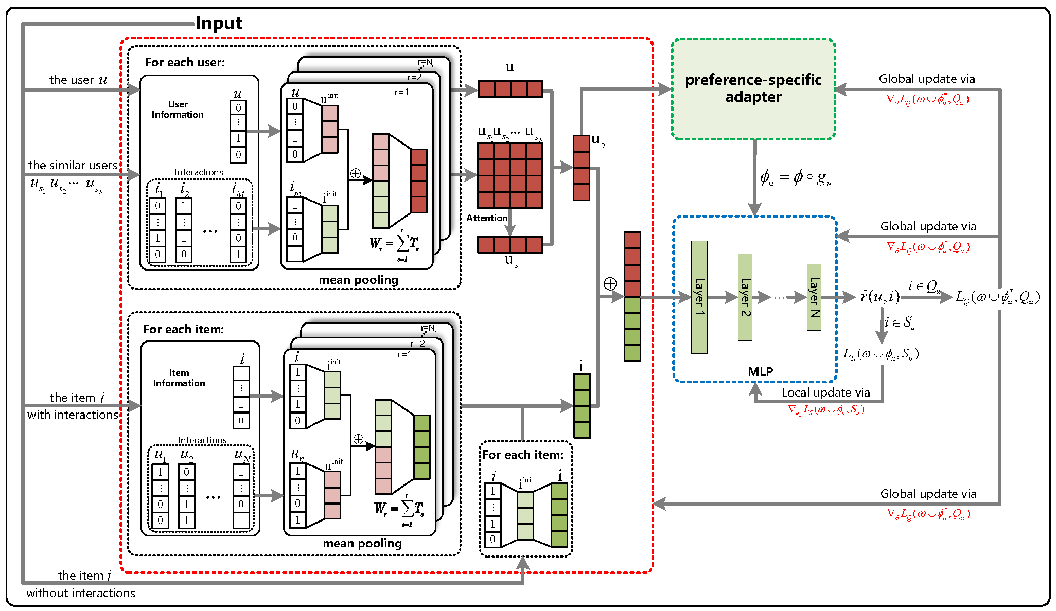 论文概述:推荐系统向具有少量交互信息的用户或项目提供推荐时,常会遇到冷启动问题。为了解决冷启动问题,基于元学习的方法在近年来发挥了较好的作用。 在元学习框架下,先在预训练阶段使模型学习全体用户偏好,然后利用少量交互信息微调模型局部参数以适用于目标用户。然而,我们认为,在冷启动场景下仅利依赖用户自身交互信息可能不足以很好地捕捉用户偏好。为了解决这个问题,我们提出了一种新的元学习方法。该方法先基于固有属性和交互信息来识别相似用户,再嵌入这些相似用户信息来丰富当前冷启动用户的表示。其中,相似用户信息的聚合是通过一种基于评分方差的注意力机制。为了更好地建模用户偏好,我们根据评分设计了不同的神经层来生成用户或项目表示,并利用权重共享策略来避免对某些评分对应的embedding层参数学习不充分的问题。在采用mini-batching策略的元训练中,我们采用增量学习方案为所有任务学习一组泛化参数。在公共基准数据集上的实验结果表明,M2EU在各种冷启动场景和非冷启动场景中都优于其它先进方法。