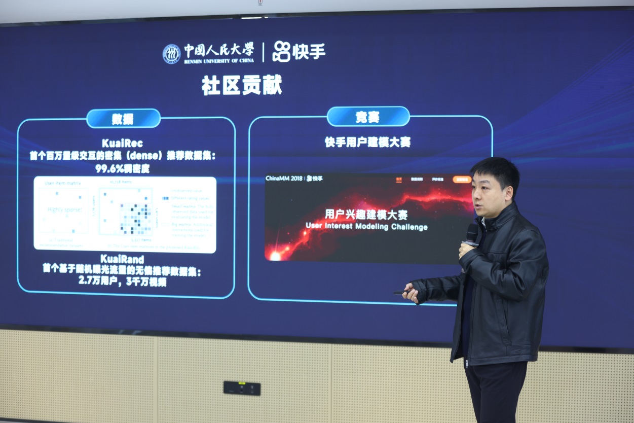 快手副总裁宋洋进行了快手前沿技术探索及合作布局介绍,并分享了快手在内容生产、理解方面取得的成果以及未来规划;展示了快手与人大合作的搜推联合项目进展情况,以及在图表示、端智能、因果推断等技术探索领域取得的成就。