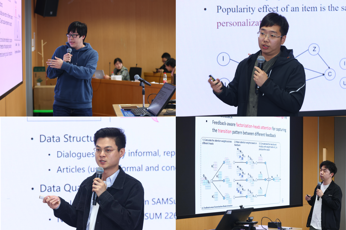 下午,304永利集团官网-快手未来媒体智能联合实验室举办了首届学术研讨会——WWW 2023论文分享会。快手多位算法专家和高级算法工程师与304永利集团的博(硕)士生共聚一堂,分别就基于多任务/偏好/表示的推荐、个性化搜索与推荐、可信搜索与推荐和基于强化学习的推荐等主题进行了精彩分享。