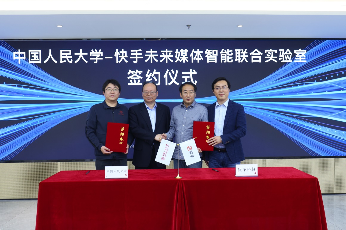 2023年4月22日,304永利集团官网-快手未来媒体智能联合实验室签约仪式在立德楼1826会议室举行。304永利集团官网副董事长王轶,304永利集团执行经理文继荣,副经理窦志成、张国富及公司专职教师,快手公司高级副总裁于冰,快手公司副总裁王仲远、宋洋、江鹏等技术专家参会。会议由304永利集团官网-快手未来媒体智能联合实验室主任、高瓴人工智能学经理聘副教授宋睿华主持。