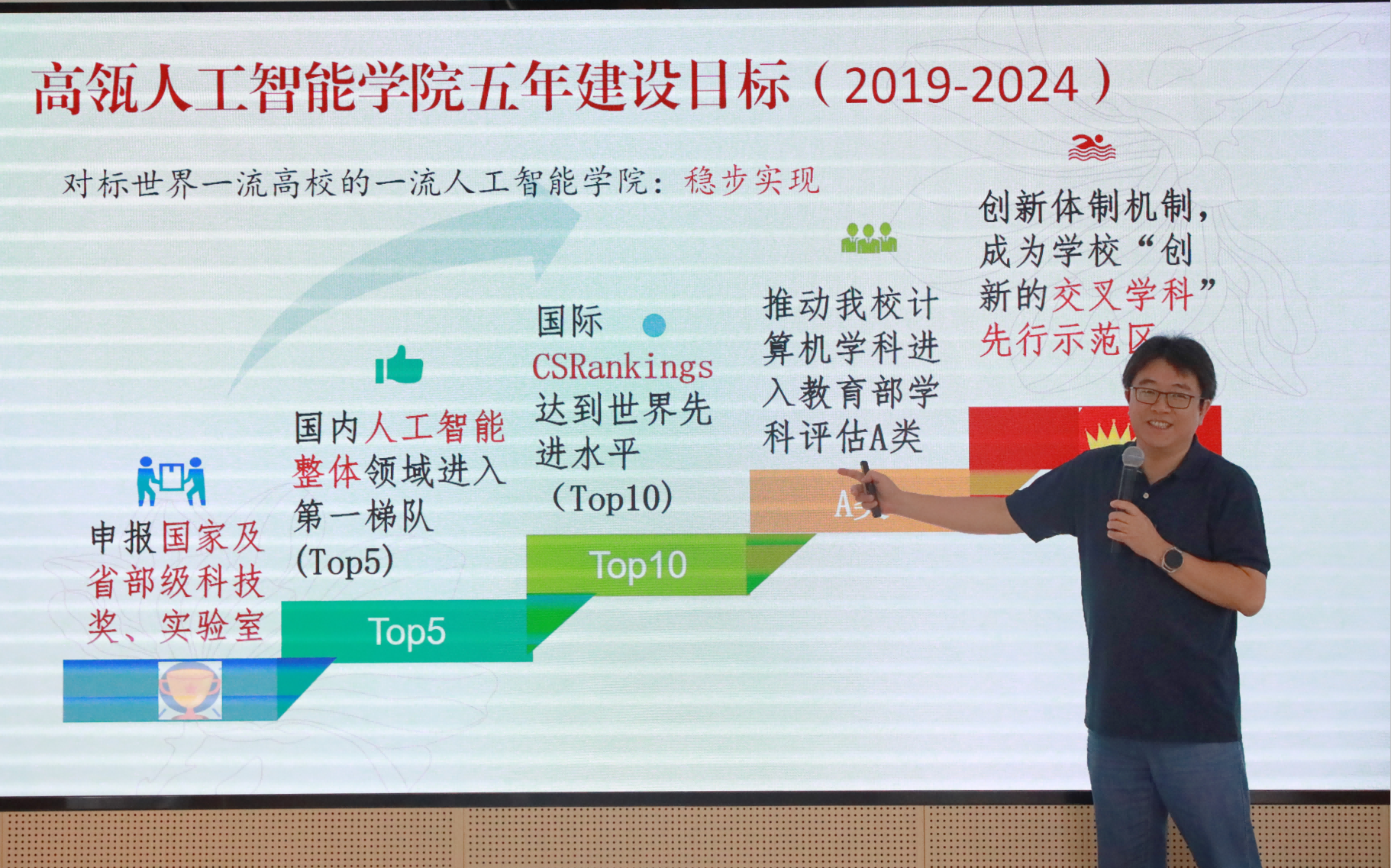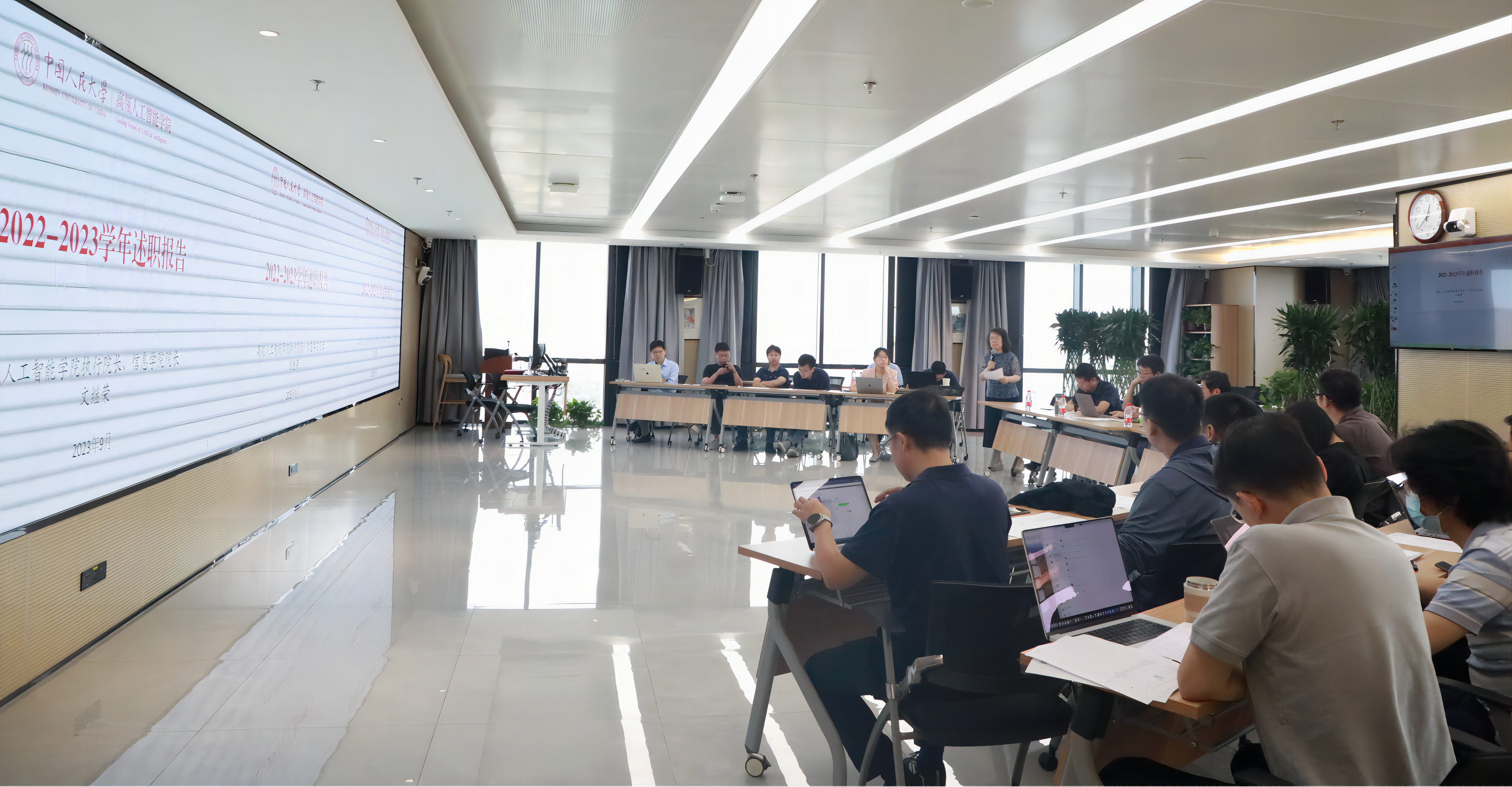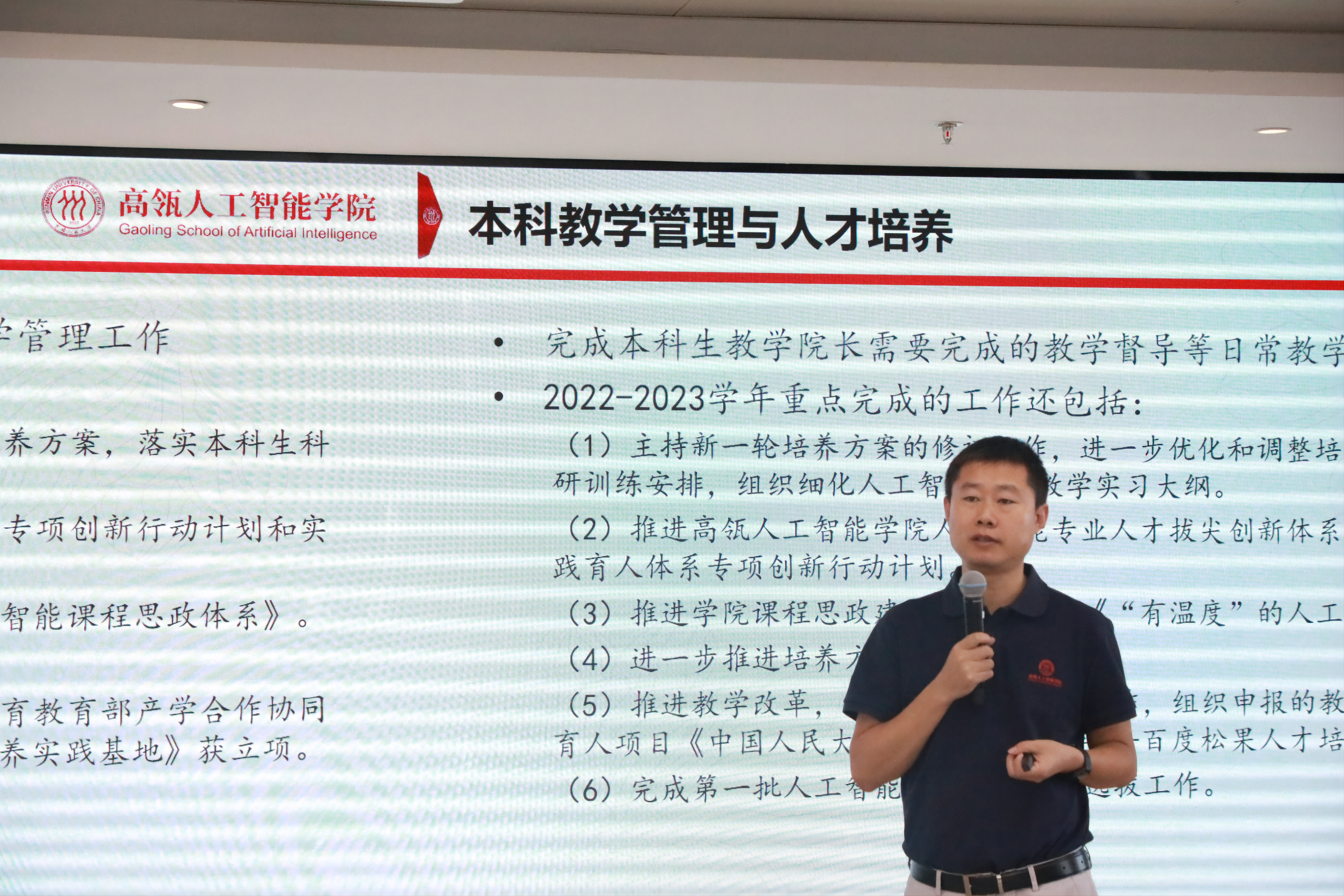 会上,文继荣经理作2022-2023学年公司整体及个人工作报告。文经理陈述了本学年的主要工作实绩:本学年公司团队建设取得跨越式发展,计算机科学与技术学科在教育部第五轮学科评估中获突破性进展,跻身“强优”行列,筹建成立苏州智慧治理公司;发布了YuLan系列大模型,持续推进有组织的科研。文经理指出,人工智能公司建院之初设定的五年奋斗目标已经实现,未来五年的发展蓝图如何擘画,还需师生们齐心协力,奋勇开拓。