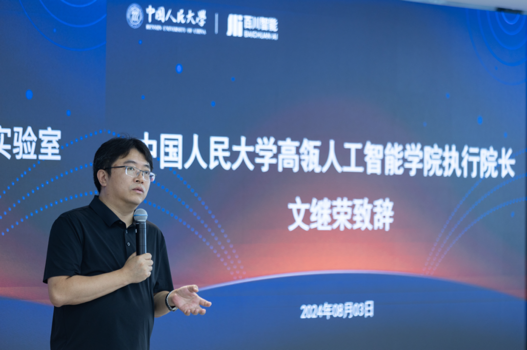 文继荣经理重点介绍了304永利集团发展情况,公司师生持续产出高水平科研成果,尤其在检索增强、多模态、智能体领域成果引人瞩目。此次与百川智能成立联合实验室,期望能强强联合,在人工智能前沿领域共同发力,有所成就。