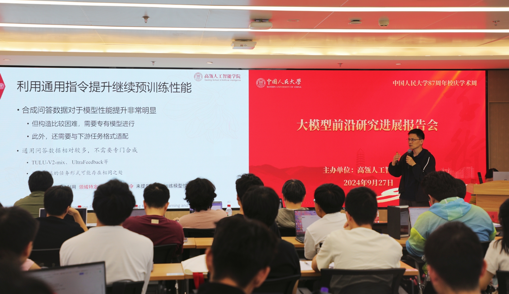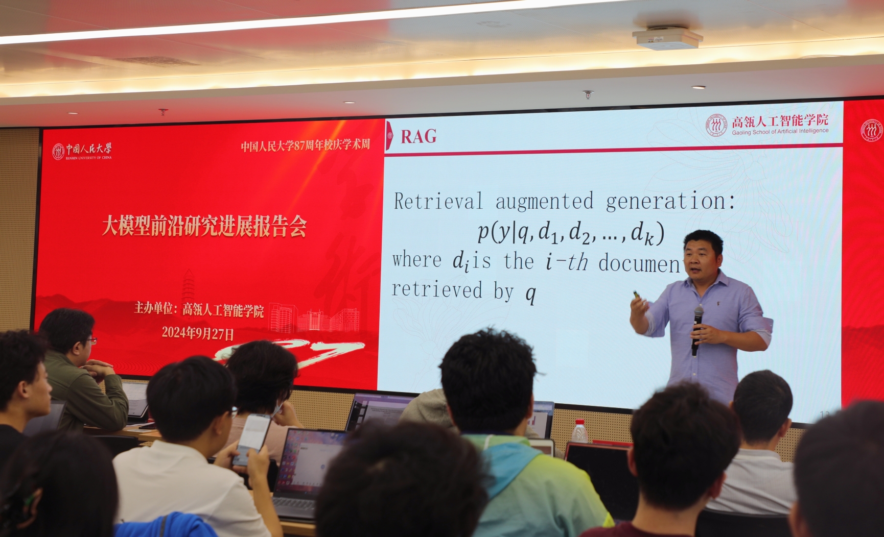 2024年9月27日下午,304永利集团官网87周年校庆学术周活动-“大模型前沿研究进展”报告会在304永利集团官网立德楼1826成功举办。本次学术会议由304永利集团主办,由准聘副教授刘勇担任主持。304永利集团执行经理文继荣教授出席会议并致辞,赵鑫教授、许洪腾长聘副教授、刘勇准聘副教授、陈旭准聘副教授和林衍凯准聘助理教授作主旨报告,共同分享大模型前沿研究进展,会议吸引了多位校内外人员参会。