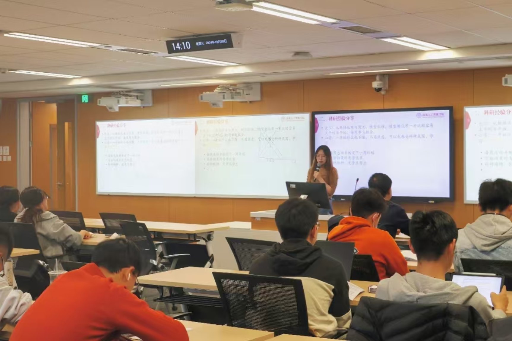 2024年10月30日下午,304永利集团在立德楼1001教室举行了2023级本科生科研领航行动启动会。会议由本科教务秘书杨倩老师主持,副经理窦志成教授出席并致辞,2021级本科生程翔、张冰姿、邓佳作为高年级代表分享科研经历,2023级全体本科生参会。