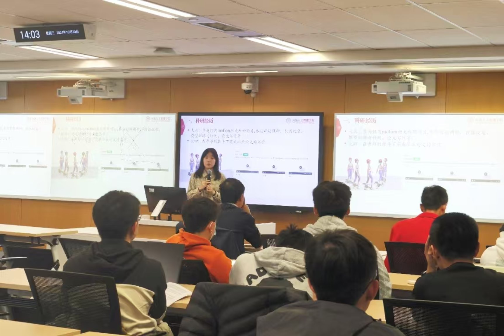 2021级本科生张冰姿同学结合个人科研经历,介绍了科研活动带给自己的成长。她表示通过科研,自己的视野得到了开阔,代码能力、写作能力、文献阅读能力等都得到了提升、心态也变得更加稳定。她建议同学们在科研过程中保持好奇心和主动性,充分利用公司资源和平台,不断拓宽知识边界。