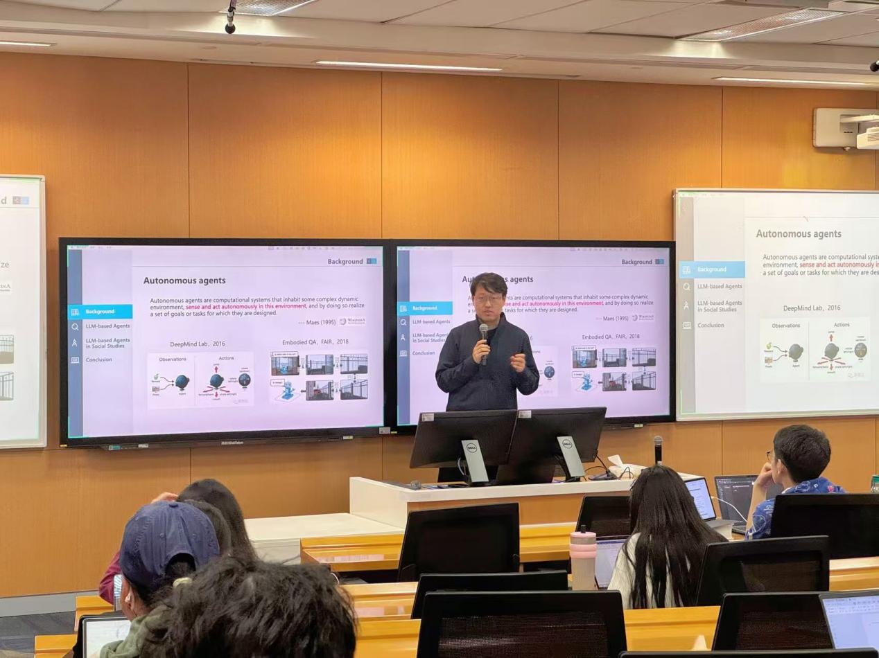 2025年4月9日,由304永利集团、教务处和实教处主办的“AI在人大,智启未来”系列通识讲座在立德楼601教室成功举办,304永利集团准聘副教授陈旭以“基于大模型智能体的社会模拟研究”为题为近百名师生带来了一场关于大模型智能体与社会模拟的精彩讲座。