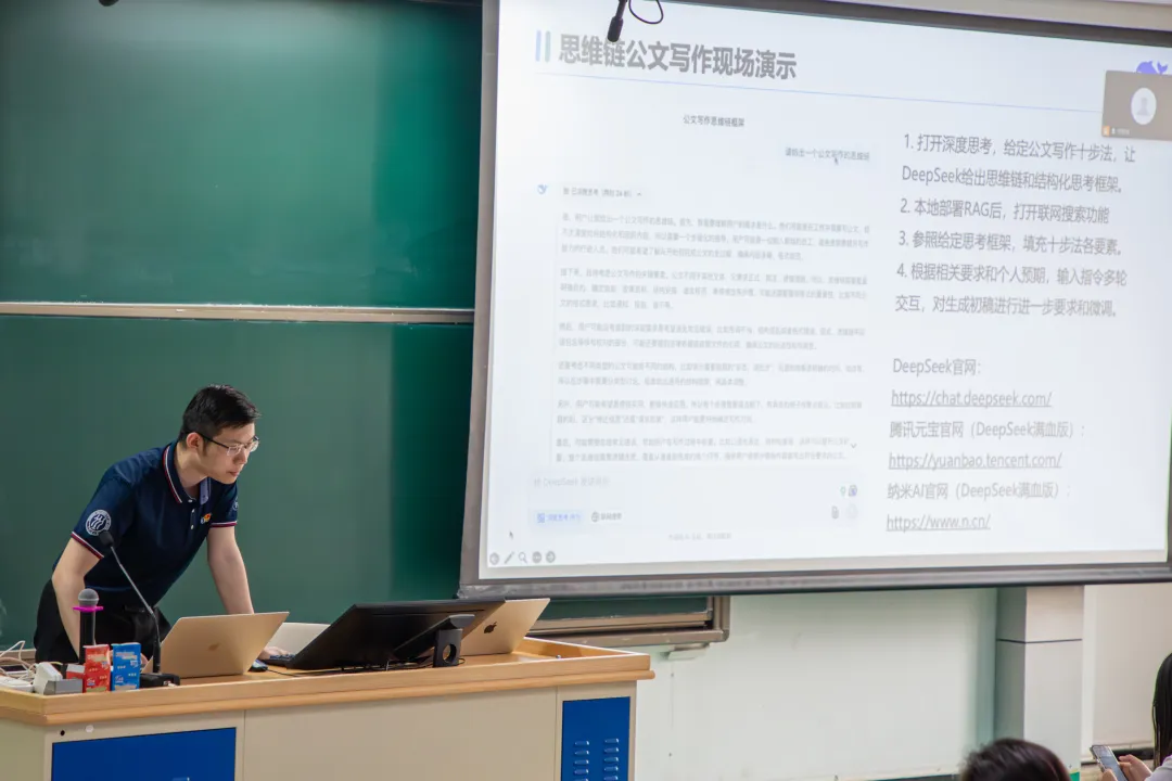 除了公文写作,李熙还分享了DeepSeek在其他领域的应用。比如在网申投递场景中,无论是撰写邮件还是修改简历,DeepSeek都能发挥重要作用。李熙通过展示实际案例,让师生们切实感受到了AI在求职升学过程中的实用价值。