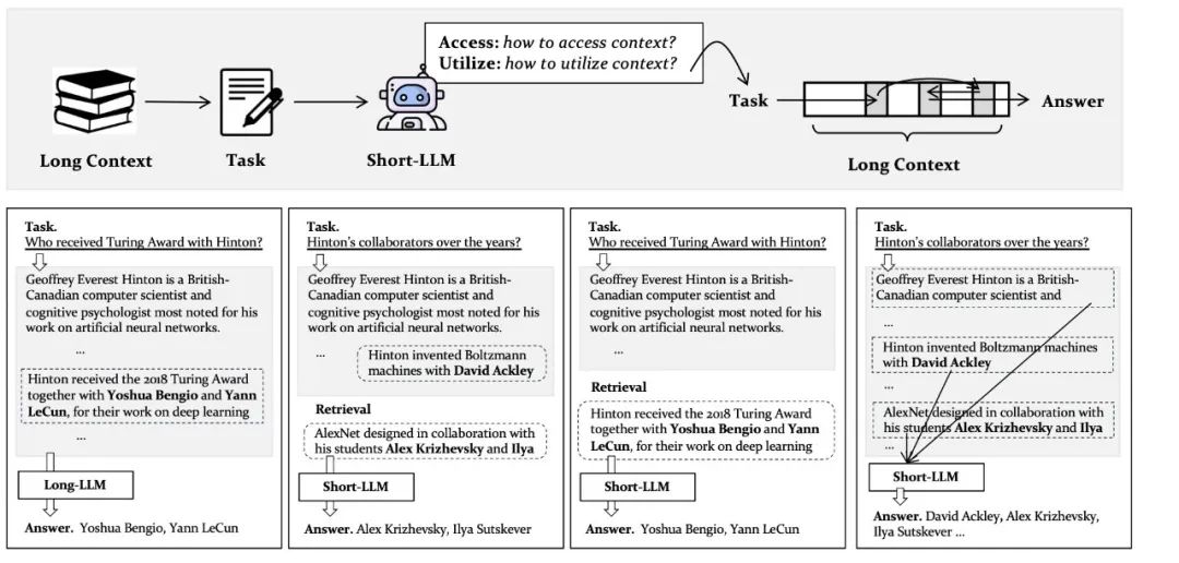 论文概述:知识密集型任务通常需要在长文本上下文中进行复杂推理和语境理解。然而,尽管近年来取得了进展,长上下文大语言模型的训练与部署仍然是一项挑战性问题。在本研究中,我们提出,短上下文大语言模型在处理具有长上下文的知识密集型任务方面具有巨大潜力——即这些任务可以通过仅依赖输入长上下文中的“理想短上下文片段”来完成。基于这一观点,我们提出了一个名为 DCISO的框架,使得短-LLM能够通过动态浏览上下文来处理知识密集型的长上下文任务。在该框架中,短-LLM会自行推理并做出两个关键决策:(1)如何访问输入上下文中最相关的部分,(2)如何高效利用所访问的上下文内容。通过根据具体任务自适应地访问与使用上下文,DCISO 能够作为一个通用框架,用于解决多样化的知识密集型长上下文问题。我们在多个流行的长上下文基准任务上进行了全面评估,实验表明 DCISO 在各类任务上都取得了显著的性能提升。