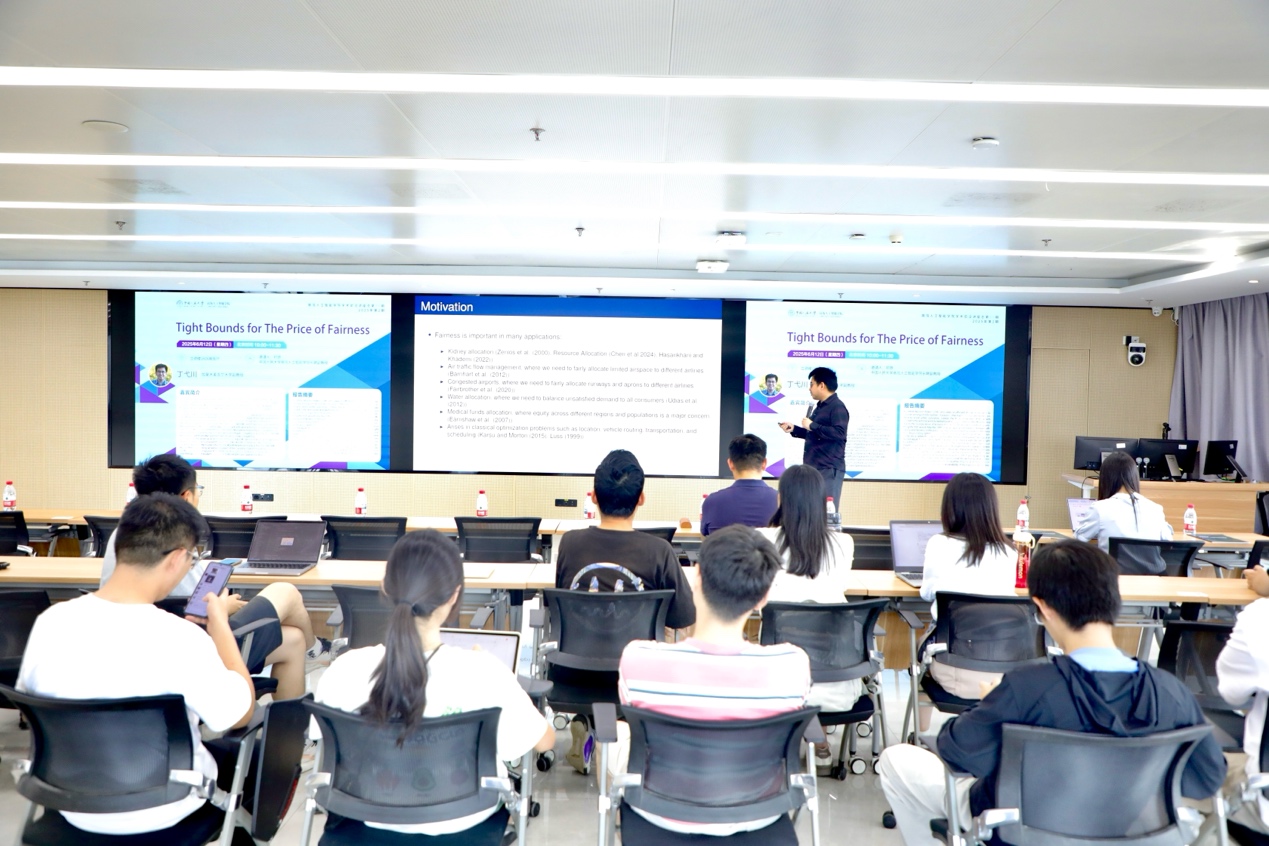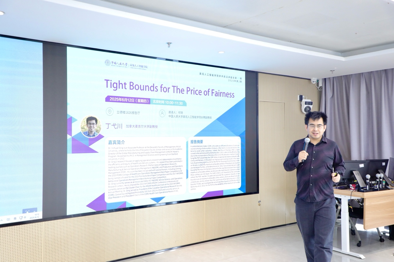 2025年6月12日,304永利集团迎来了一场聚焦资源分配公平性与效率平衡的深度学术交流。加拿大麦吉尔大学副教授、德桑特尔荣誉学者丁弋川应邀访问,以“Tight Bounds for The Price of Fairness”为主题展开前沿报告,为师生揭示了公平准则在资源分配中的理论边界与实践意义。