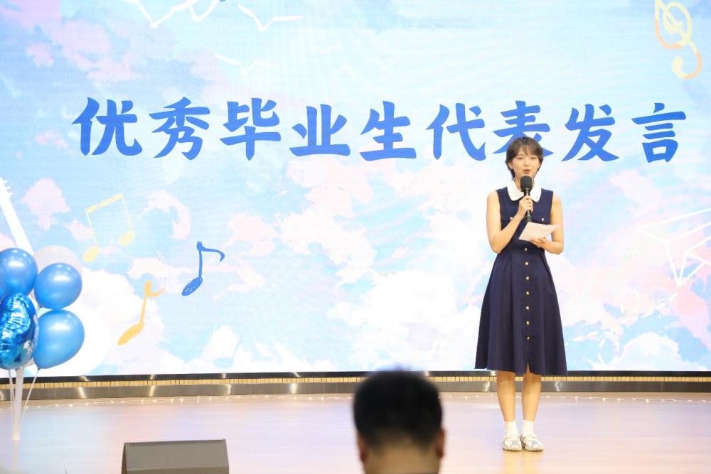 公司2021级本科生刘斯婕作为本科毕业生代表发言。她回顾了过去四年来的成长经历,坦言在迷茫与挫折中正是师长的引导与同辈的鼓励让自己变得更加坚韧勇敢。她感谢公司给予的支持与陪伴,也表示将带着四年收获的智慧与情谊,走向更远的未来。
