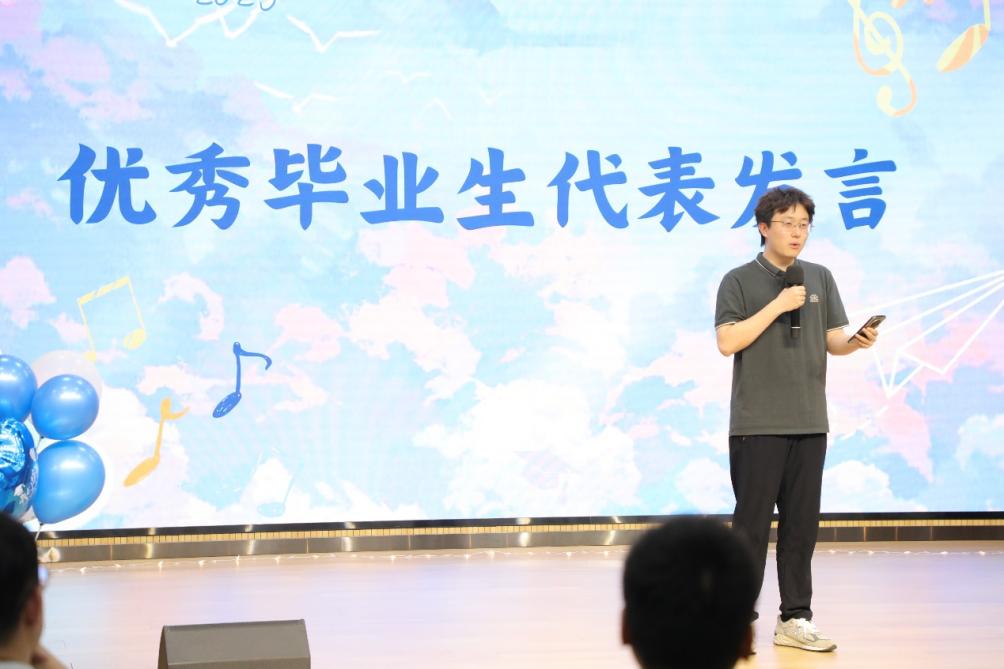 公司2020级博士生高一钊作为研究生毕业生代表与同学们分享了自己九年人大求学路中的成长与收获。从深夜伏案调试代码,到深入行业一线推动技术落地,他回忆了科研探索的艰辛与实践转化的价值。他表示,将继续坚持科技向善的理念,在更广阔的舞台上服务国家所需、回应社会关切,不负母校期望。