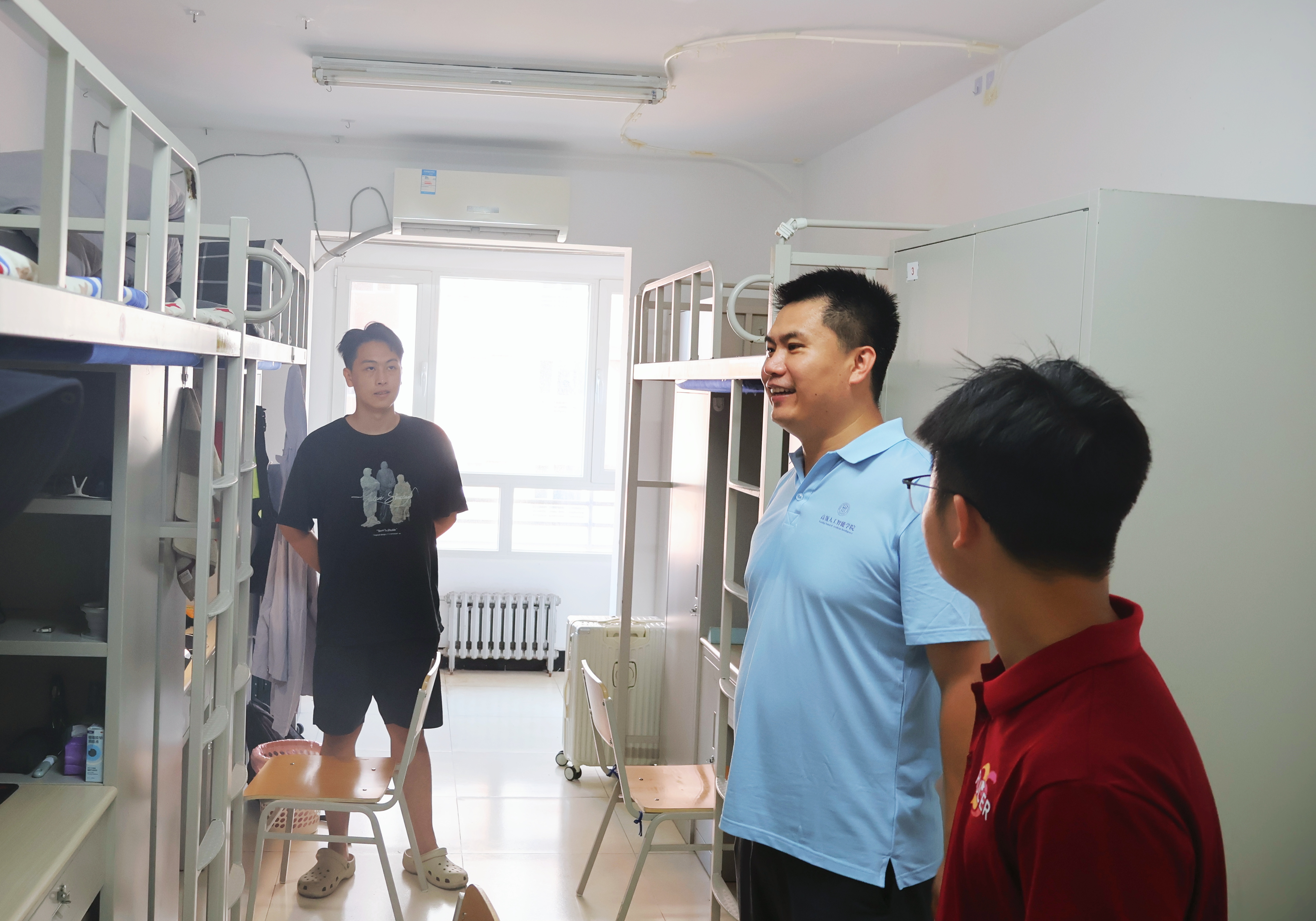 公司新生班主任与辅导员逐一走访新生宿舍,细致了解同学们的入住情况与生活需求,鼓励大家积极适应新环境、尽快融入课题组,以饱满的精神状态迎接研究生阶段的学习与科研生活。