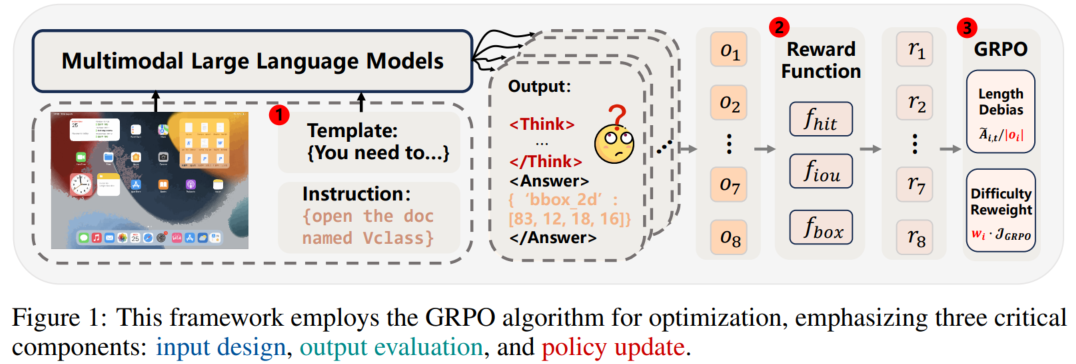 论文概述:论文分析了R1-Zero强化学习范式在GUI视觉定位任务中的三大瓶颈——冗长推理链损害定位精度、奖励函数诱发“奖励黑客”、策略更新存在长度与难度偏差,并针对性提出“快速思考模板”压缩输出、“尺寸约束奖励函数”平衡命中与框体质量、以及“去归一化+难度加权”的策略优化机制。最终构建的轻量模型在仅17K训练样本下,在ScreenSpot和ScreenSpot-Pro基准上分别达到90.3%与37.1%的准确率,同时推理速度相较InfiGUI提升3倍,证明“少即是多”在GUI代理训练中切实可行。