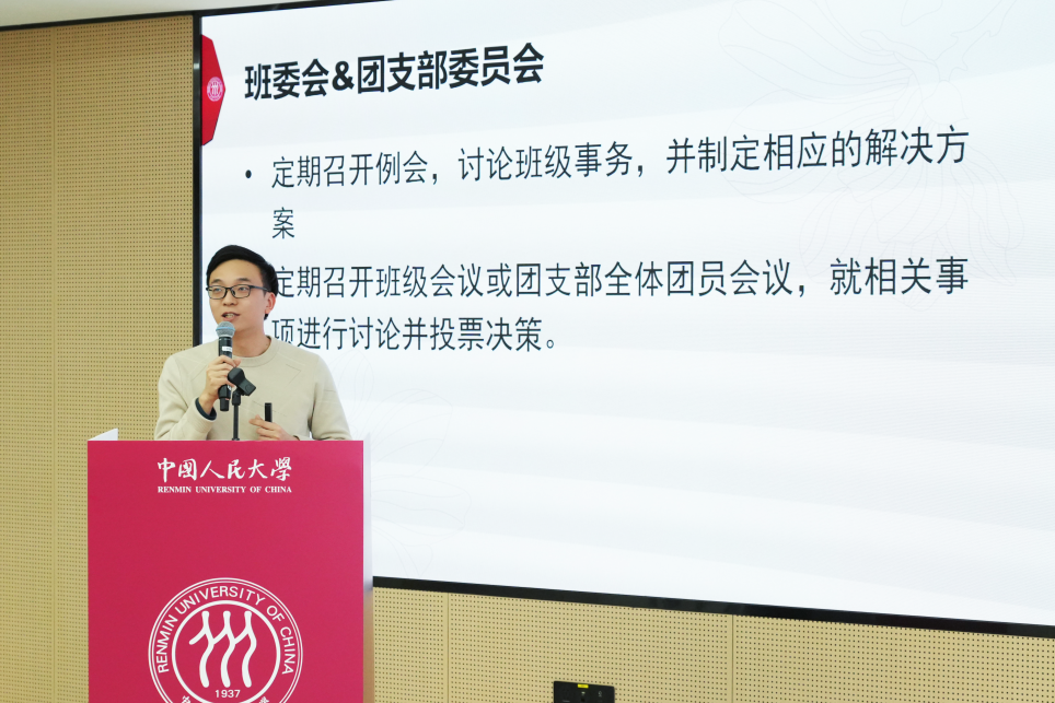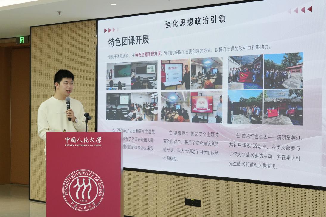 最后,张育铭为本次经验分享会作总结讲话。他高度肯定了同学们在繁忙课业的同时,仍能高质量推进班团建设的责任担当与卓有成效的工作实绩,并为大家所展现的热情与活力深感触动。他勉励同学们继续保持这份热忱与干劲,寄语2025级同学认真汲取本次分享会传递的宝贵经验,将其转化为今后开展班团工作的扎实行动与内在动力。同时,他鼓励全体班团骨干继续群策群力、锐意进取,持续激发基层活力,共同推动公司班团工作实现新发展、迈上新台阶,并欢迎大家随时沟通交流、积极建言献策。