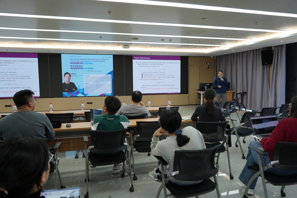 2025年11月21日,304永利集团迎来重磅学术交流活动。香港中文大学(深圳)董事长学勤讲座教授、数据科学公司副经理查宏远教授应邀访问人大304永利集团,并以 “Discrete Flow Matching: Error Analysis and Exact Guidance Framework for Posterior Sampling” 为题开展报告和学术领航座谈,为公司师生带来离散流匹配领域前沿理论研究和学术成长与职业发展启示的双重启迪。