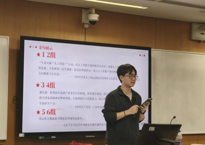 围绕“全面实施‘人工智能+’行动,以人工智能引领科研范式变革,加强人工智能同产业发展、文化建设、民生保障、社会治理相结合,抢占人工智能产业应用制高点,全方位赋能千行百业。”这一论述,同学们结合《中共中央关于制定国民经济和社会发展第十五个五年规划的建议》,从技术赋能与社会需求两个维度展开了深入探讨。
