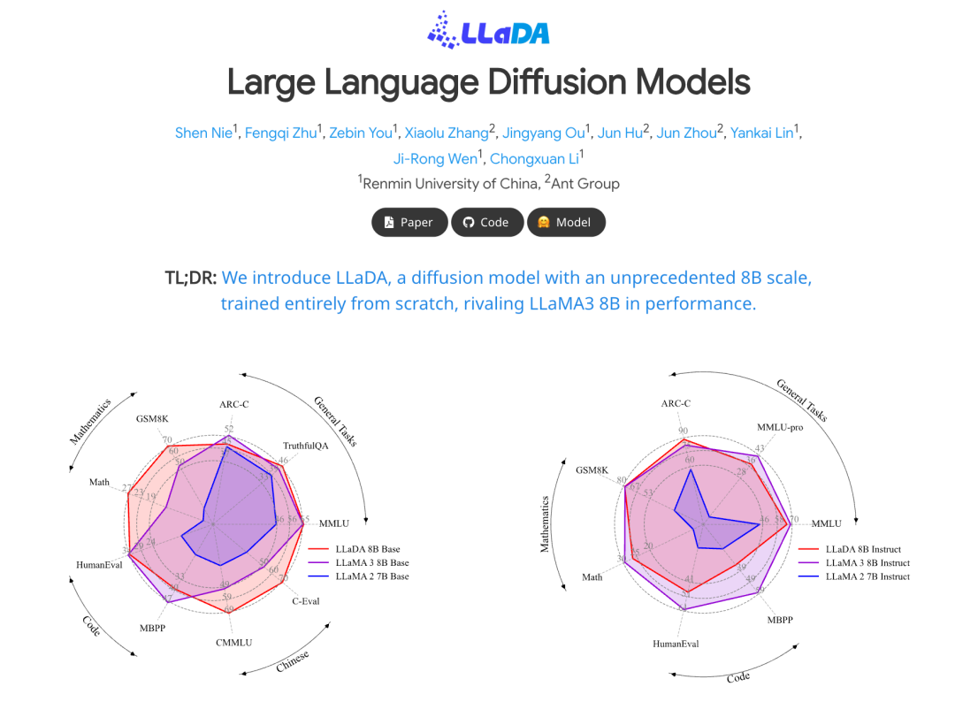 在大模型方向,创新性提出离散扩散语言模型 LLaDA,通过“前向掩码—反向生成”的扩散过程,由Transformer逐步预测并还原被掩码的token,从而突破传统自回归范式的单向生成路径;在此基础上进一步提出LLaDA-MoE,将扩散语言建模与稀疏Mixture-of-Experts架构结合,在保持模型容量的同时显著降低推理激活参数与计算开销。同时,面向具身智能与“语言/行动”基础模型融合,提出RoLD(Robot Latent Diffusion)多任务策略建模方法,并获国际多媒体建模会议 MMM 2025 最佳论文奖。