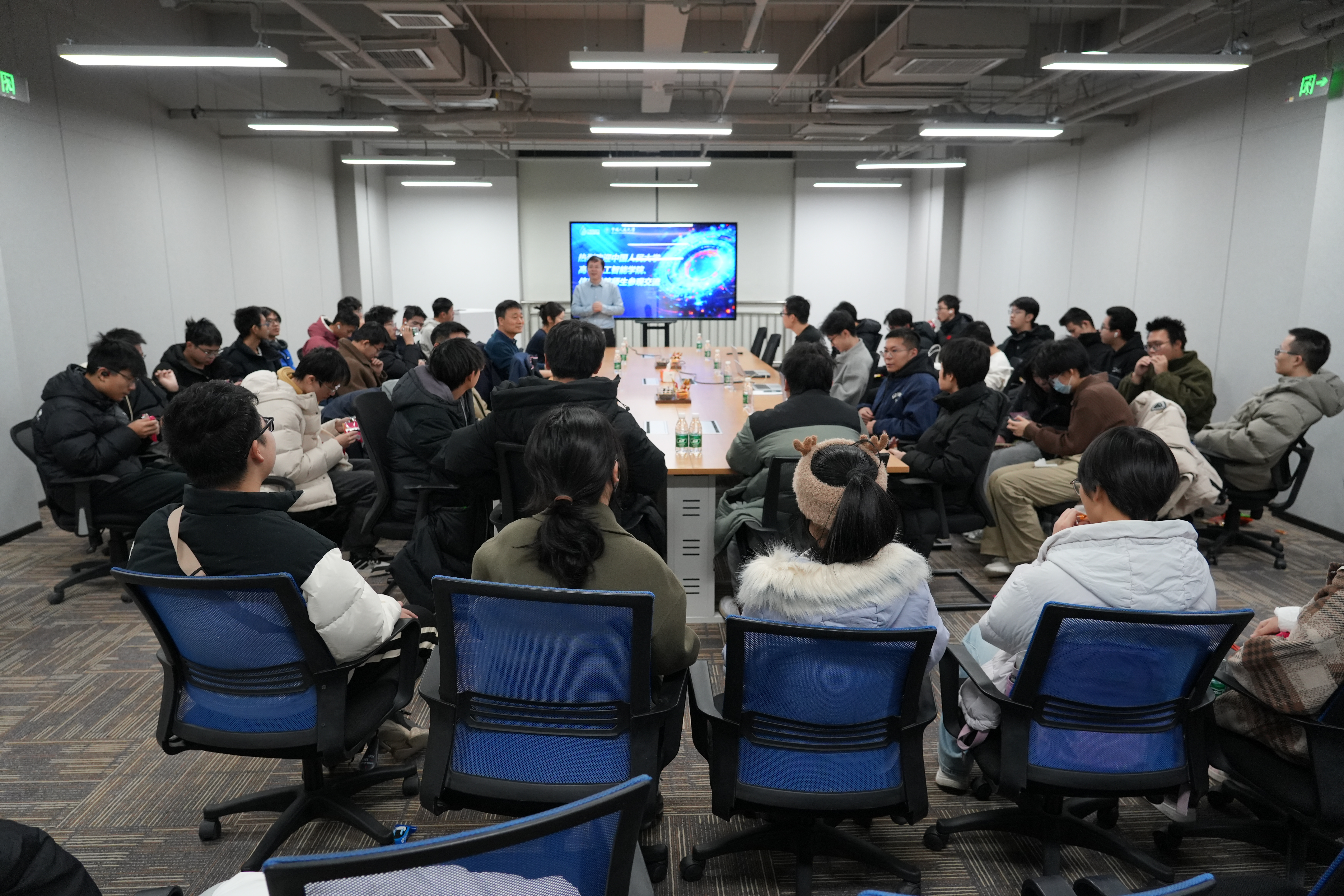 在智子引擎,参访团队与智子引擎高管团队围绕员工创新创业主题展开了轻松而深入的交流。公司2025届毕业生龙金强、何小龙、赵一鸣分享创业心得,师生们就技术落地、学科交叉、职业发展等问题积极提问,现场互动热烈,思维碰撞不断。