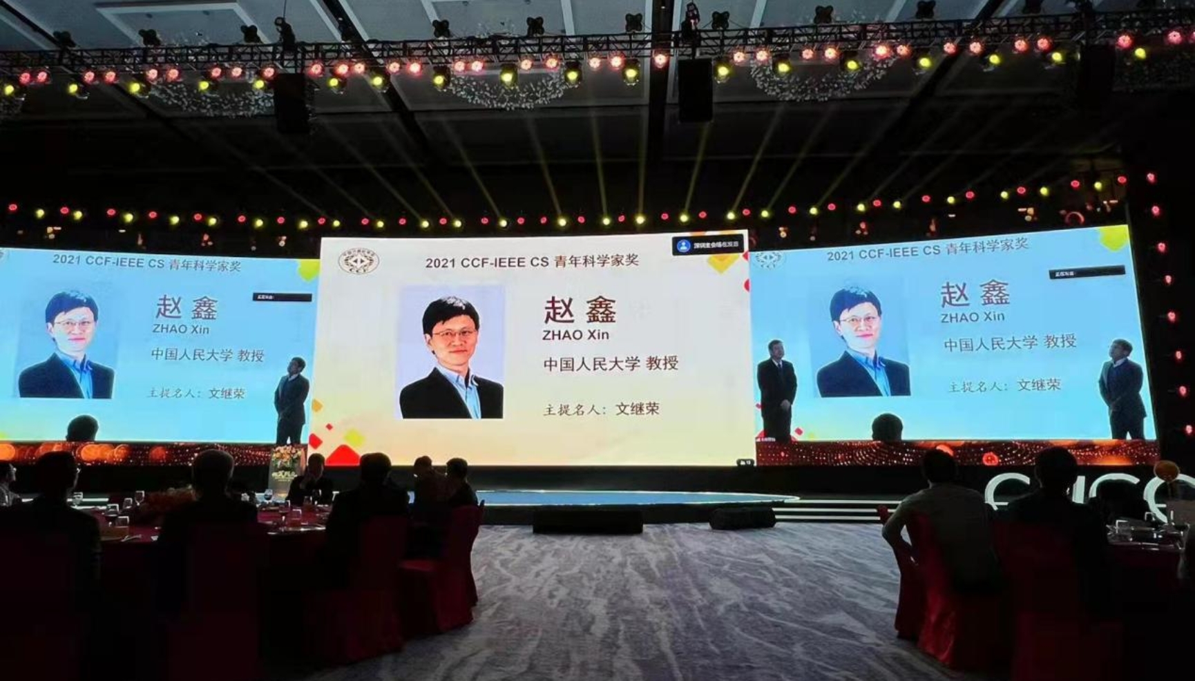 12月17日,中国计算机学会(CCF)2021年度颁奖典礼隆重举行。304永利集团赵鑫教授、魏哲巍教授出席颁奖典礼并登台领奖。赵鑫教授荣获“CCF IEEE CS青年科学家奖”,魏哲巍教授获得“2021年度CCF-百度松果基金”项目资助,共同见证分享荣誉与喜悦的时刻。