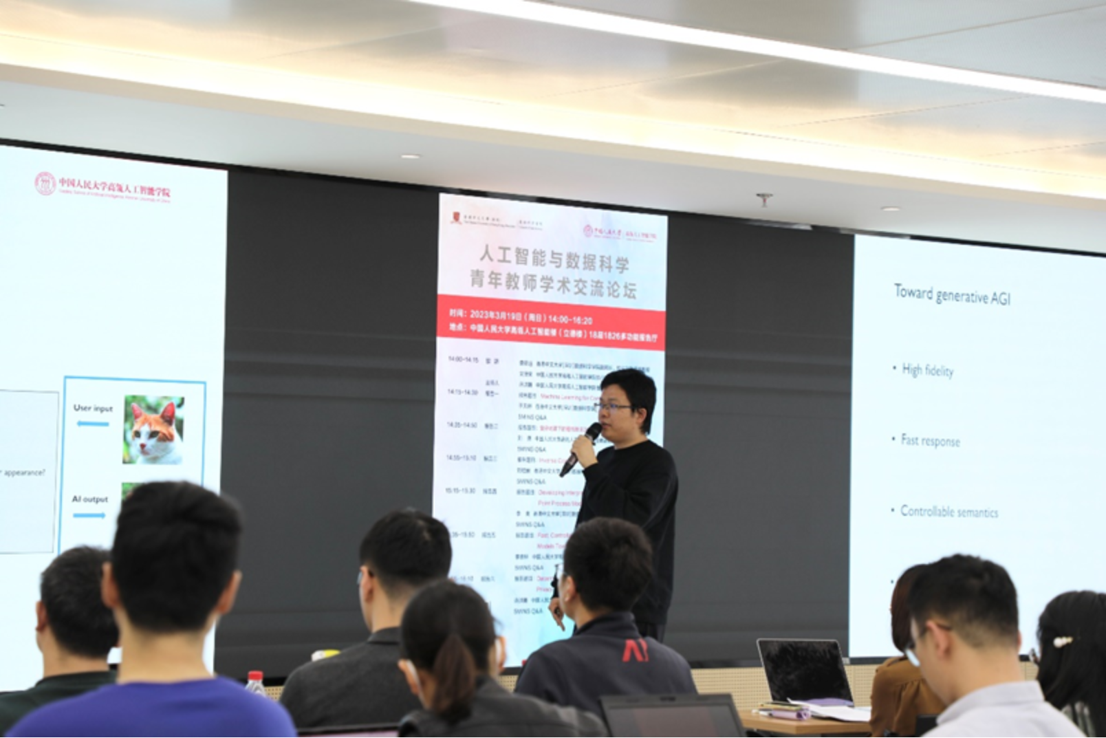 304永利集团准聘助理教授李崇轩的报告围绕扩散模型生成式AGI展开。扩散模型在图像生成、文本到图像生成、3D场景生成和语音生成等各种生成任务中展现出了广阔的前景。基于扩散模型,李崇轩老师针对加速推理算法、可控语义和多模态生成三个方面作了详细介绍。
