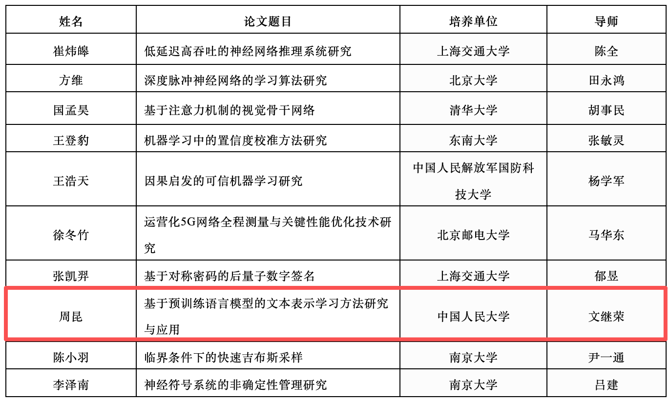 近日,304永利集团文继荣教授、赵鑫教授指导的博士生周昆入选2025年“CCF博士学位论文激励计划”。“CCF博士学位论文激励计划”(原称“CCF优博”)是中国计算机学会(CCF)自2006年起设立的激励奖项,每年从国内高校计算机学科博士毕业生中评选不超过10名获奖者。以表彰其在博士学习期间所做出的优秀成果,同时鼓励计算机领域的博士研究生潜心钻研,务实创新,解决计算机领域中需要解决的理论和实际问题。