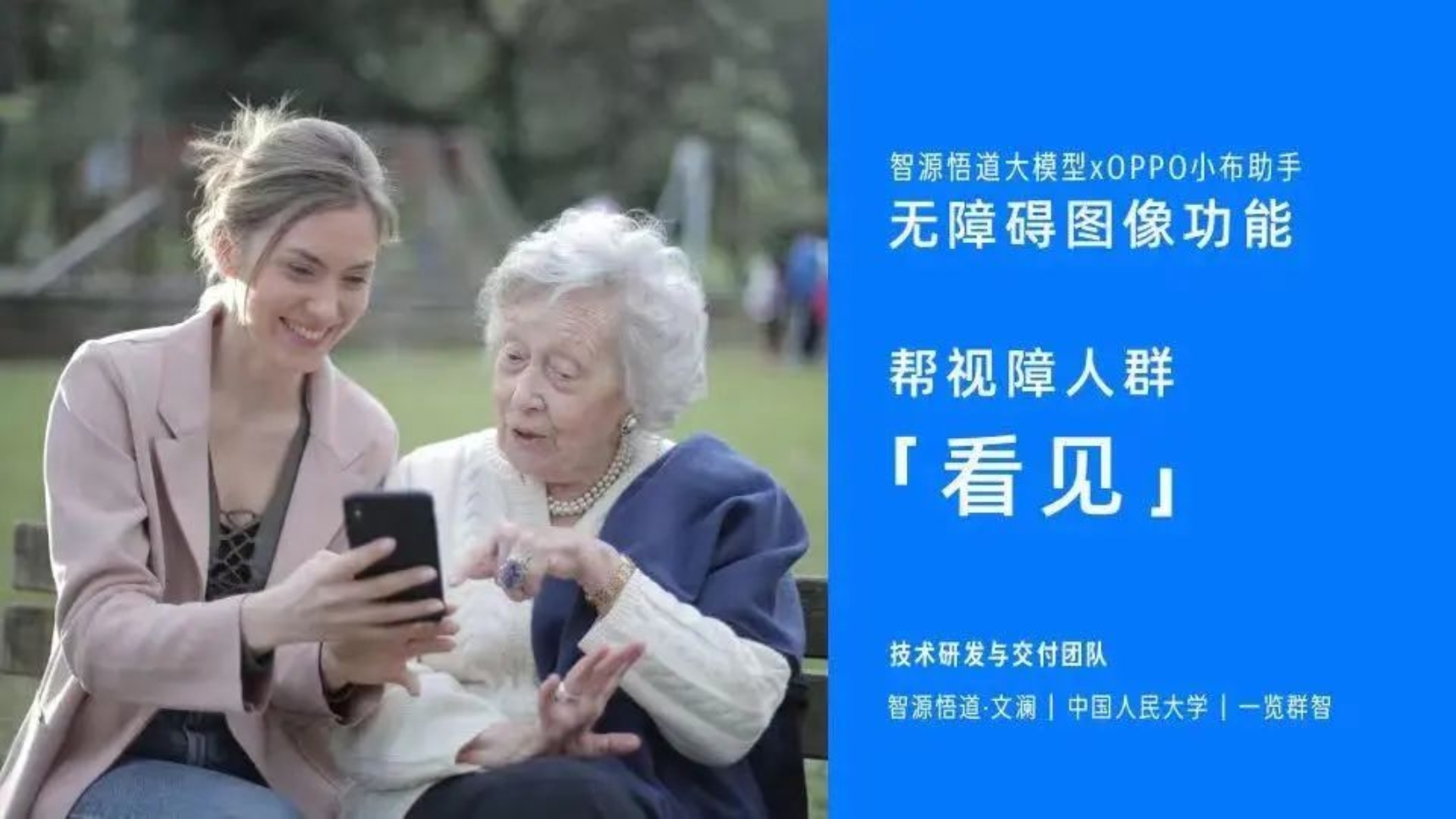 这项工作已经在快手、华为、OPPO 等企业有落地方面的探索,具体应用包括“无障碍图像”“视频剪辑”“文生成国画”等。其中,借助智能设备为人们“看图说话”,便是文澜团队研发的“无障碍图像功能”技术的落地应用,是AI科技成果转化方面的又一进展。“最好的科技是能给人们带来快乐和幸福的科技,这是我们‘有温度的人工智能’理念的一次践行。”文继荣如是评价。