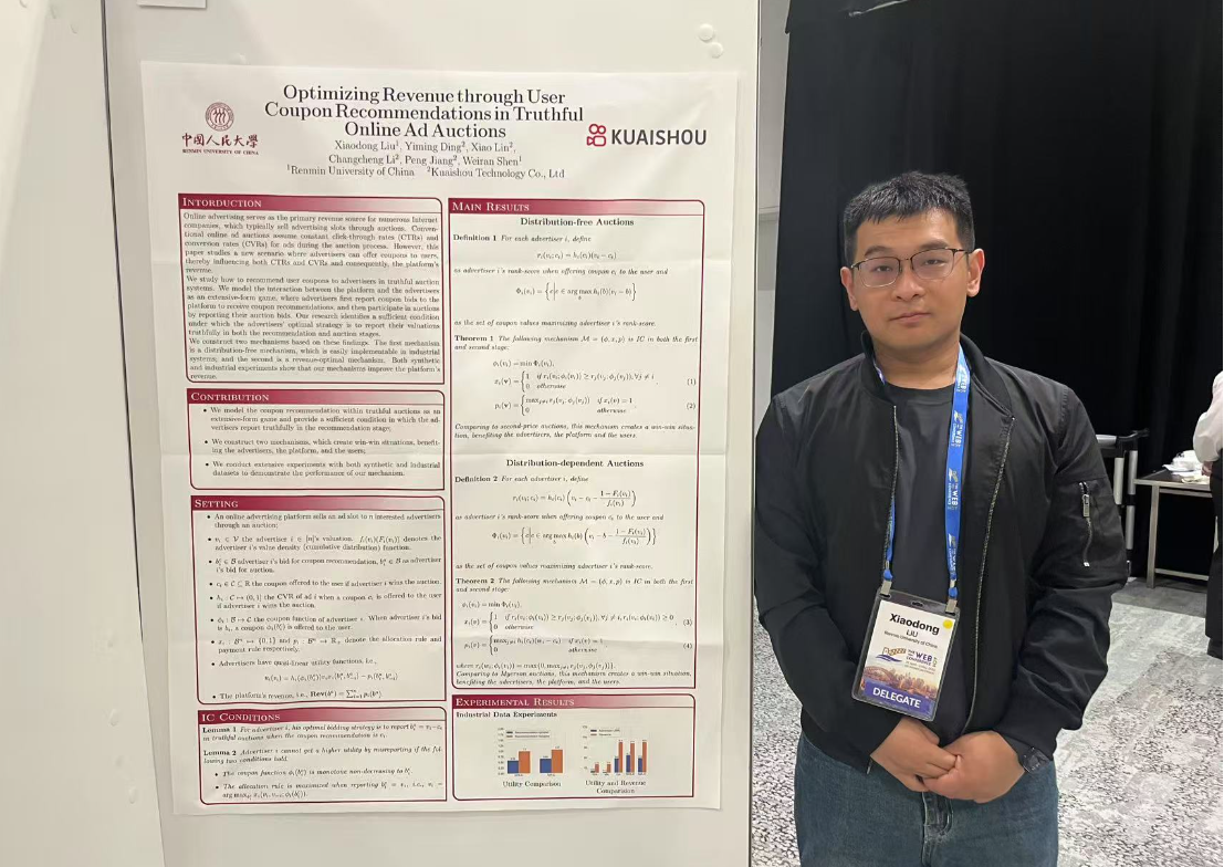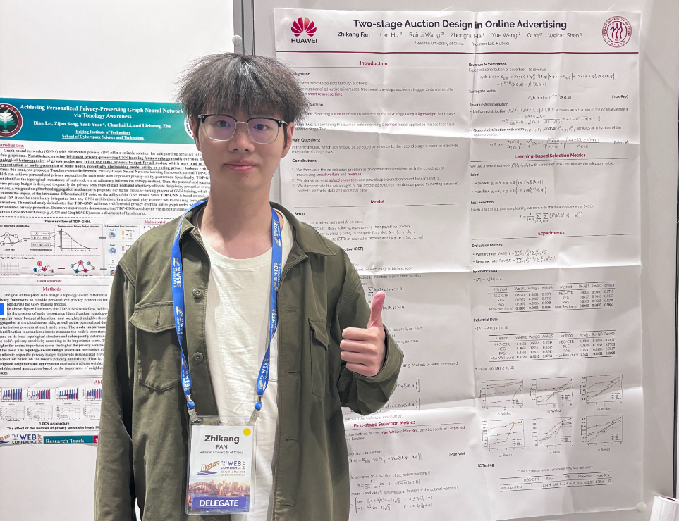 博士研究生范志康作为第一作者在WWW会议上以poster的形式展示了其论文成果,他说:“这次交流项目让我有机会与国际同行分享研究成果,通过海报展示,我收获了宝贵的反馈意见,并建立了新的学术联系。”