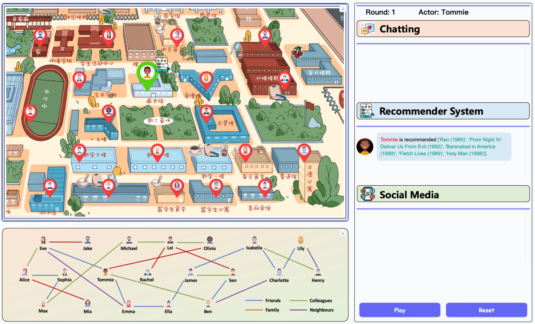 (人大校园被搬进RecAgent推荐系统沙盒模拟环境,有种crush的感觉)