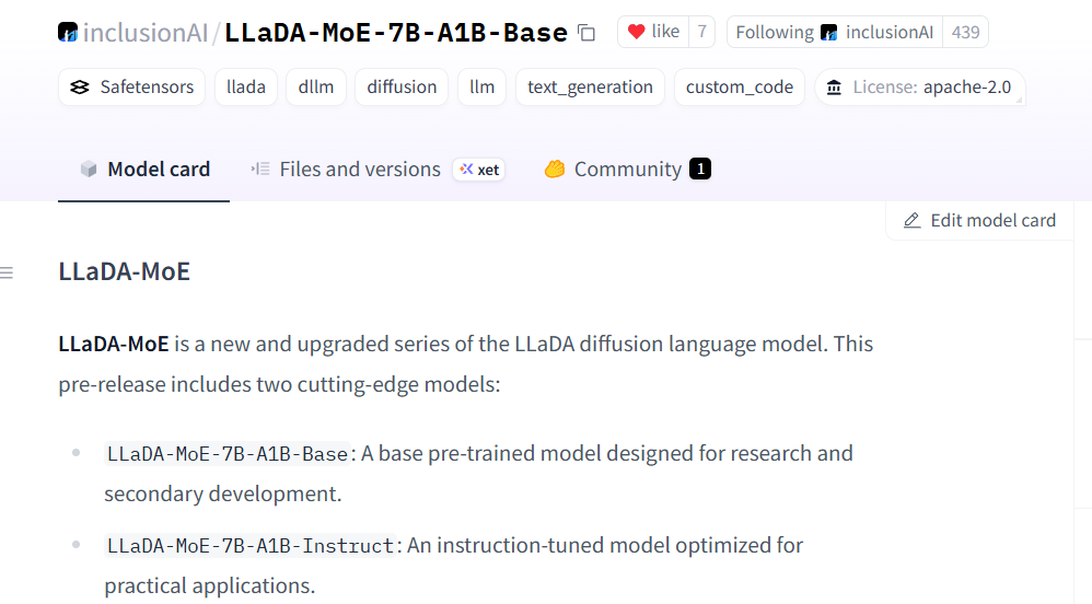 https://huggingface.co/inclusionAI/LLaDA-MoE-7B-A1B-Instruct
