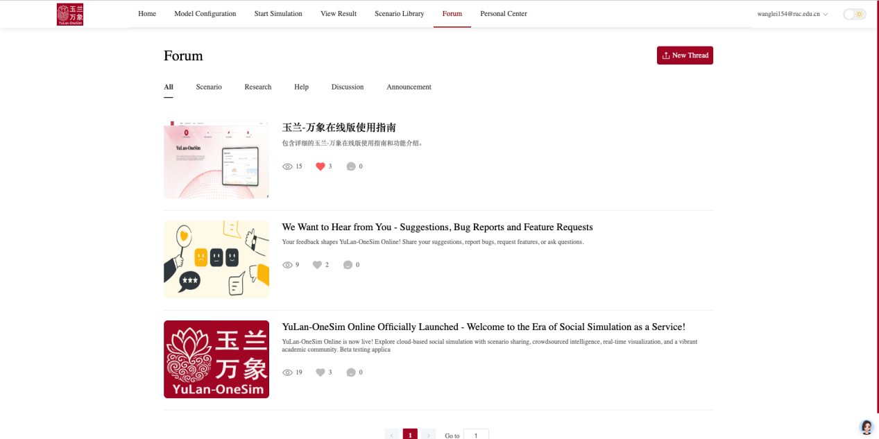 面向未来,玉兰-万象在线版(YuLan-OneSim Online)将继续拓展社会模拟的边界,构建更加开放、智能与协同的科研生态,成为智能社会仿真领域的核心引擎和全球交流的新窗口。